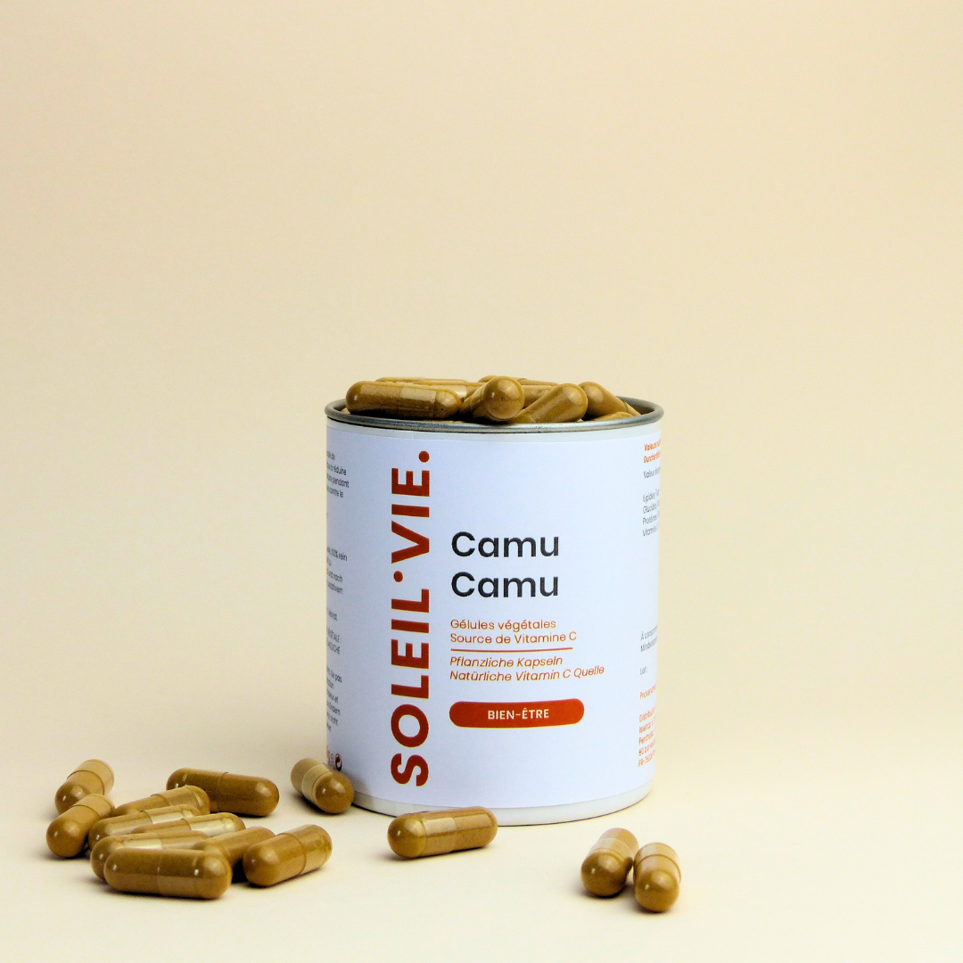 Le Camu camu est une baie originaire du Pérou, source naturelle de vitamine C. Pour 100kg de poudre de camu camu, 3000kg sont récoltés par des cultivateurs locaux, ce qui apporte à ces régions une activité économique bénéfique. Cette baie bio a également une action antioxydante.